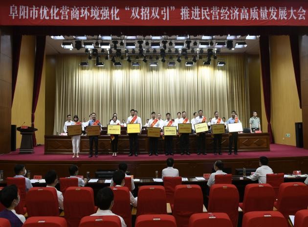 6 月 30 日下午,阜阳市优化营商环境强化“双招双引”推进民营经济高质量发展大会在阜阳市委党校召开。阜阳市委书记孙正东出席并讲话,市委副书记、市长刘玉杰主持会议。会上,大转盘 总裁朱保义代表受表扬优秀民营企业发言。