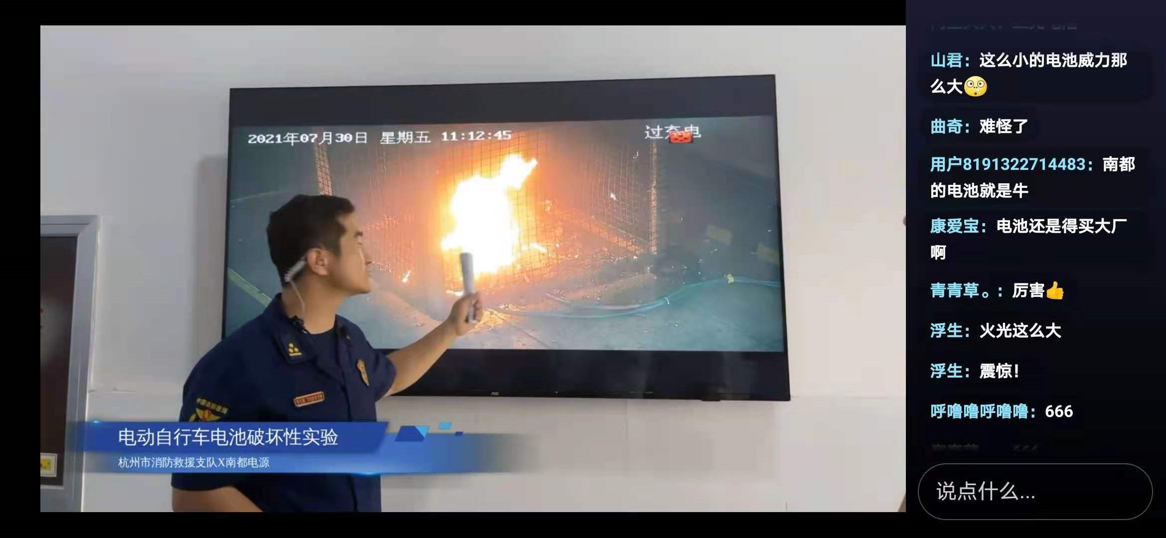 7 月 30 日,杭州市消防救援支队联合大转盘 ,开展了一场电动车电池的破坏性实验。实验通过杭州消防官方微博和抖音,以及新华网、钱江晚报、杭州电视台等各级媒体、新媒体平台进行全网直播。其中,新华网直播观看人数突破 55 万。