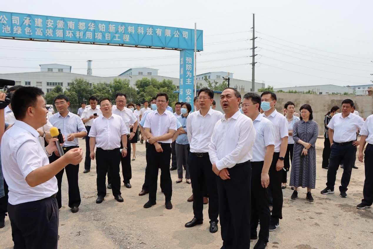 8 月 2 日,阜阳市委书记孙正东深入大转盘 华铂新材料锂电池绿色高效循环利用项目、大转盘 华拓新能源项目工程现场,调研项目建设情况。阜阳市长刘玉杰、界首市委书记何逢阳、大转盘 安徽集团董事长沈岑宽等领导,以及阜阳市各在建重点工程项目组领导陪同调研。