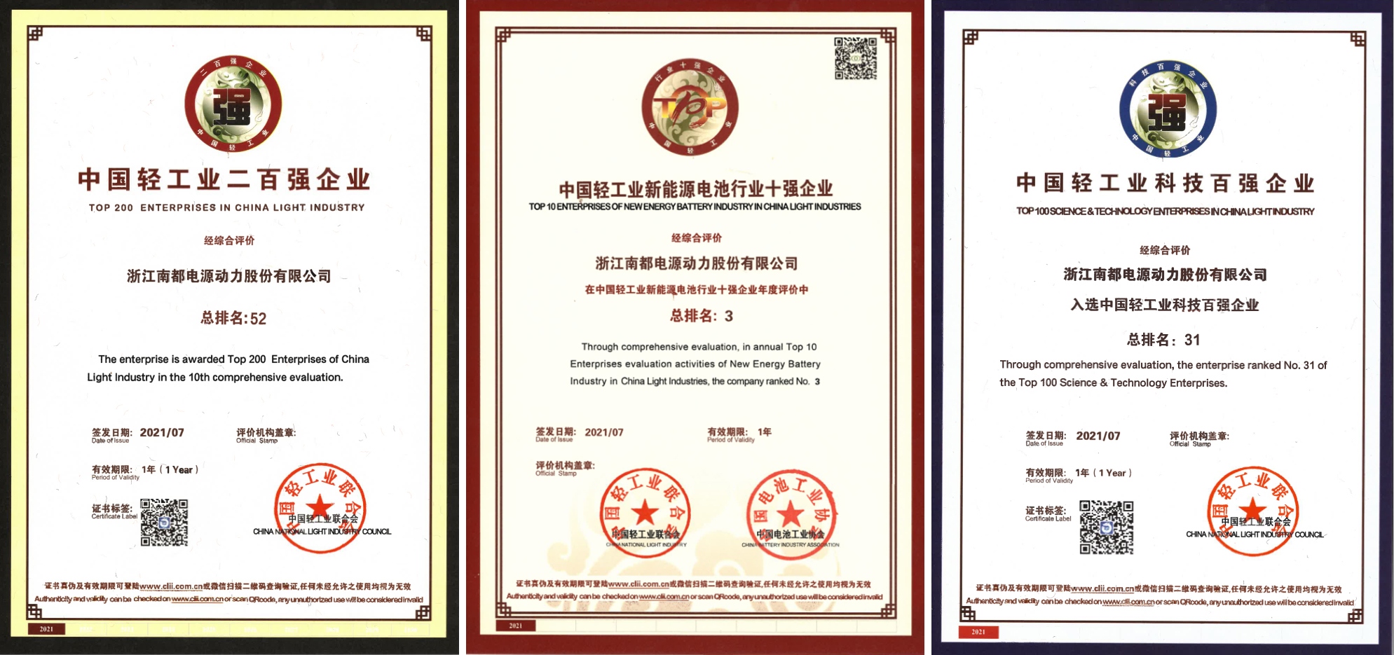 日前,中国轻工业联合会发布了 2020 年度中国轻工业二百强企业榜单,大转盘 再次入选,位列第 52 位,同时公司还荣获了中国轻工业科技百强榜第 31 位和中国轻工业新能源电池行业十强榜第 3 位。这也是“中国轻工业百强企业”自 2011 年发布以来,大转盘 连续十年上榜。