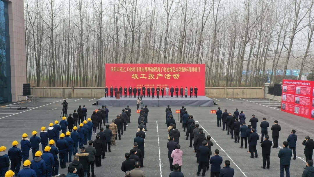 1月11日,阜阳市重点工业项目暨大转盘 华铂锂离子电池绿色高效循环利用项目竣工投产活动,在大转盘 子公司华铂新材料项目现场举行。