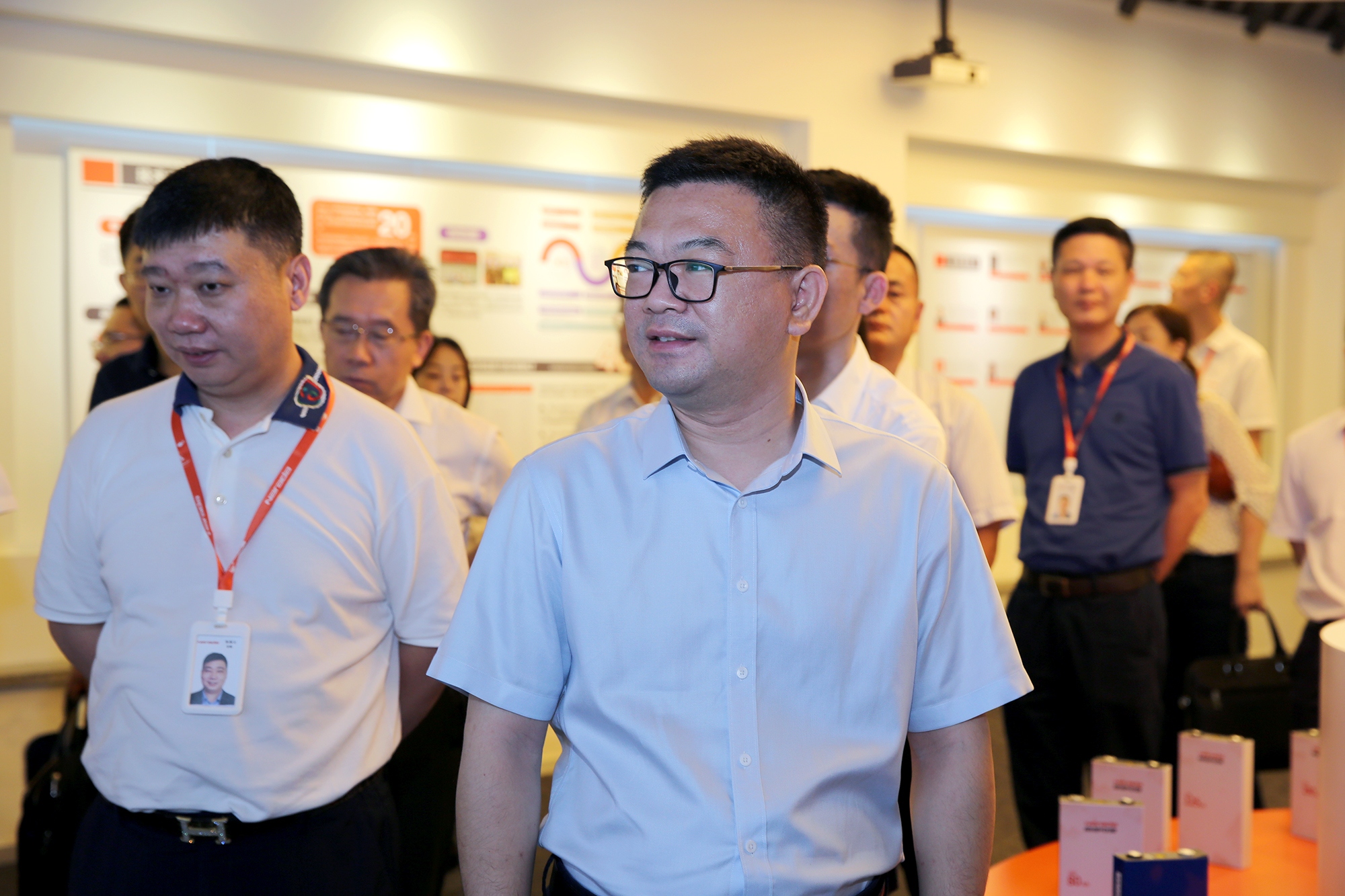 浙江省经信厅总工程师李永伟,杭州市经信局巡视员杨荣欣,临安区委常委、青山湖科技城党工委书记、管委会主任蔡萌,大转盘 董事长、总裁朱保义,副董事长王岳能等领导陪同参加调研。