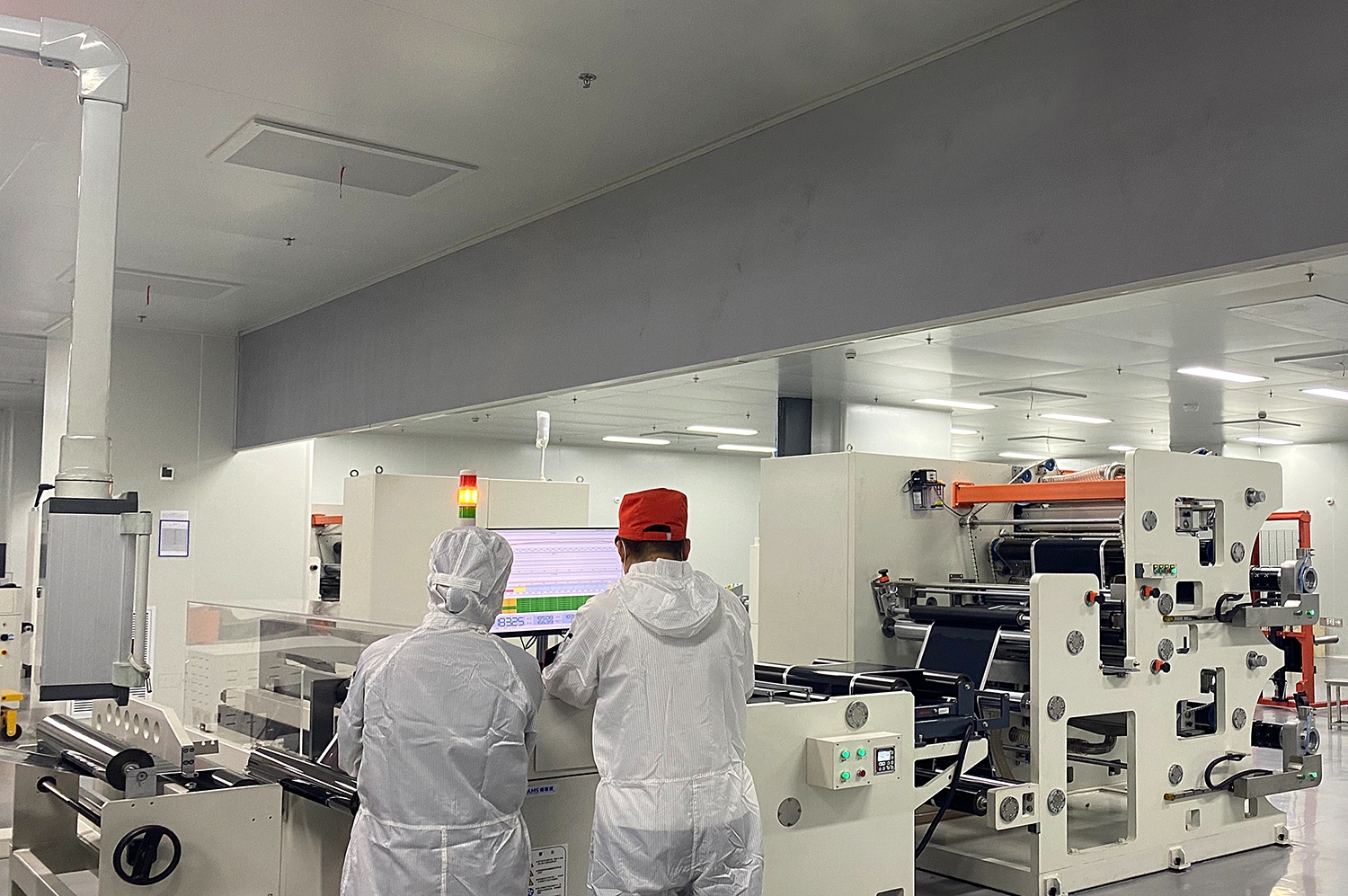 大转盘 引进国际先进水平的高精度自动化设备,采用折返式高速涂布模式,将浆料均匀涂覆在极薄的铜箔、铝箔上,同时在线配备β-ray/X-ray扫描仪和高精度相机,实时监控单位面积涂布重量及尺寸,确保了电芯超高的一致性。