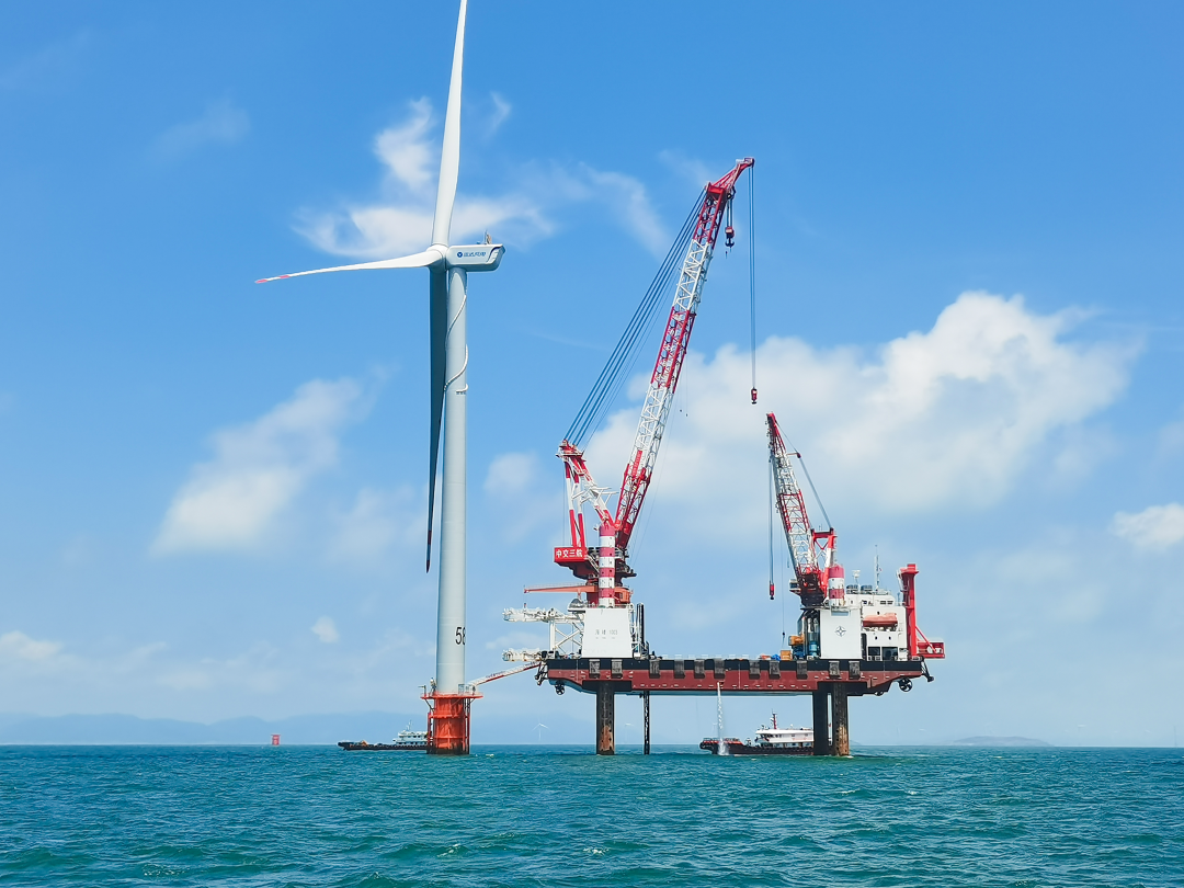 56台海上风电机组每一座都有43层楼的高度,全容量并网后,预计年上网电量高达16.4亿千瓦时。