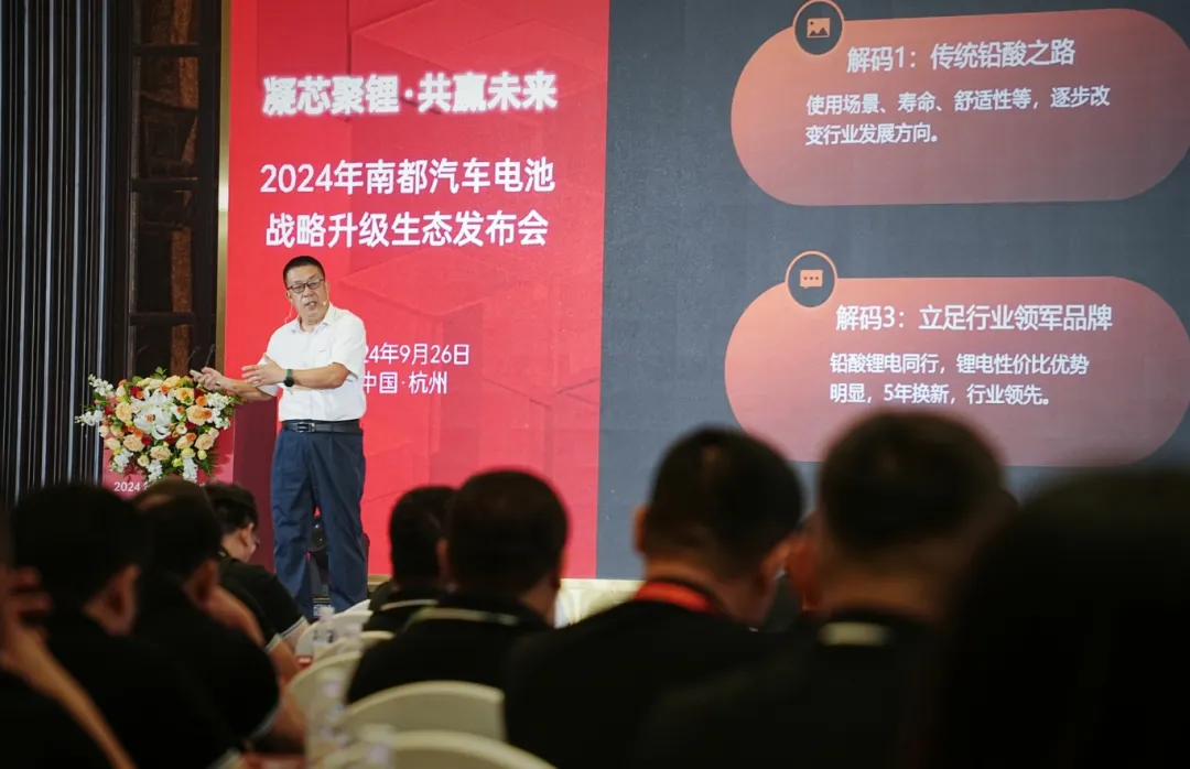 9月26日,“凝芯聚锂 共赢未来”2024大转盘 汽车电池战略升级生态发布会在杭州举行。在200余位领导来宾的共同见证下,公司正式发布大转盘 驻车智能锂电,向着“5180”的营销战略目标前进。