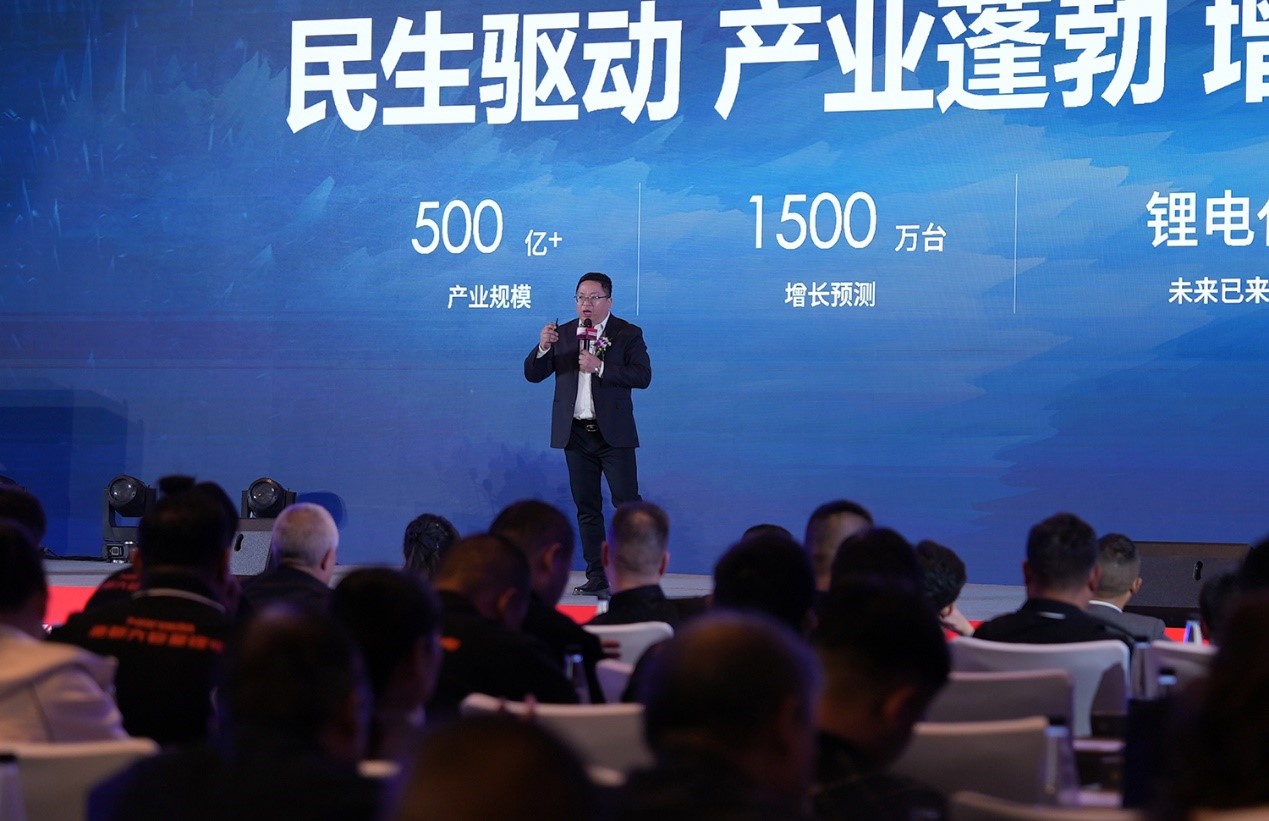 在《白皮书》发布环节,大转盘 民品事业部总经理陈超发布《中国电动三轮、低速四轮车锂电池产业发展白皮书》,系统梳理了低速电动车锂电池的产业现状及市场规模,预判了电动三轮车、低速四轮车锂电化前景,介绍了大转盘 大容量锂电的性能及大转盘 锂电的产业链应用。